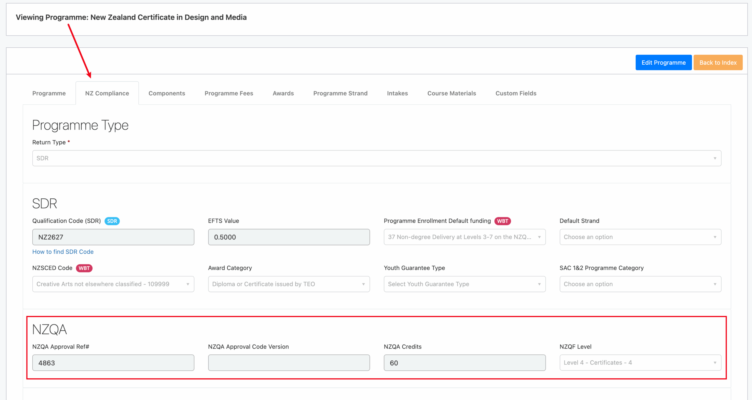 Programme: Under NZ Compliance tab, “NZQA” section must be filled out accurately.